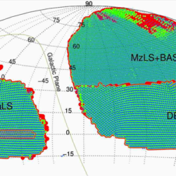 天の川銀河(銀河系)の研究のためにDESIで観測された恒星の分布を描く動画。青色から赤色になるにつれて恒星の金属量が多い(年齢が若い)恒星を表している。