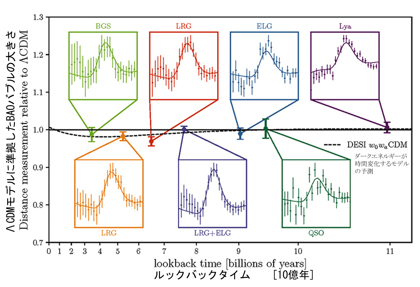 DESIサーベイでは、全天の約1/3にあたる14000平方度の天域を観測し、そこにある約3000万個の銀河のスペクトルを取得して銀河およびクェーサーの赤方偏移を測定する。赤方偏移から各銀河とクェーサーまでの距離を推定して、それらの三次元分布(宇宙地図)を作成する。その三次元分布の詳しい解析から、宇宙において天体の距離を測る標準尺となるBAOスケール、すなわちバリオン音響振動(BAO)が銀河分布に刻み込んだパターン(BAOバブル)の大きさ、の観測から宇宙膨張の歴史を描きだす。
