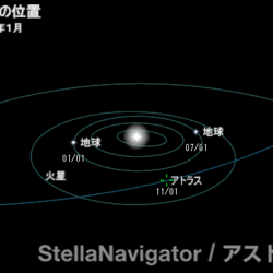 アトラス彗星の太陽系内の位置(「ステラナビゲータ」で星図作成。