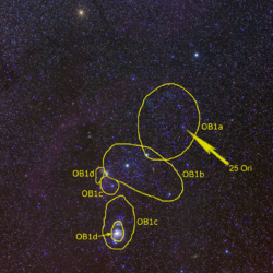 散開星団ほどの密集度はなく、重力的にも束縛されず、比較的拡がった若い星の群がアソシエーションである。特に大質量星(O型星、B型星)が目立つ場合、OB アソシエーションと呼ばれ、巨大分子雲や電離水素領域の近傍に分布し、大規模な星生成領域をなす。オリオン座にある「オリオンOB1」が有名である。